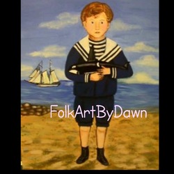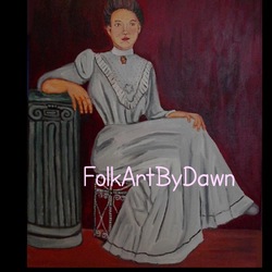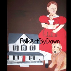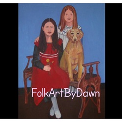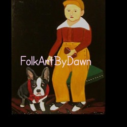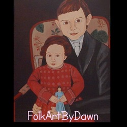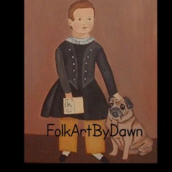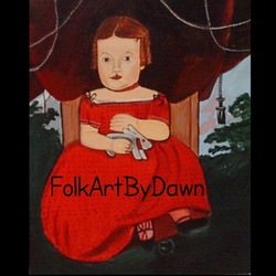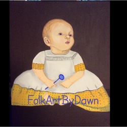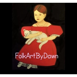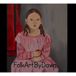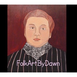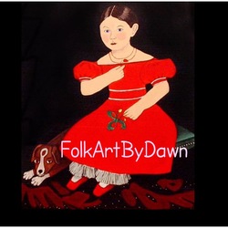 Examples of my paintings in old Folk Art Primitive Style. They are inspired by the Early American Itinerant Painters such as Ammi Phillips and William Matthew Prior. Most of my folk art paintings are on stretched Canvas. I generally paint the sides of the canvas a solid color. This way they can be displayed as is or framed.